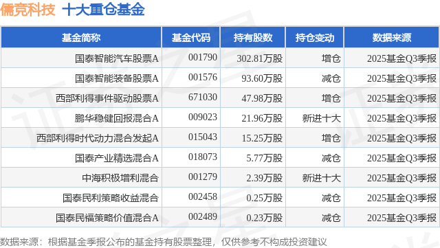 重仓儒竞科技的公募基金请见下表:
