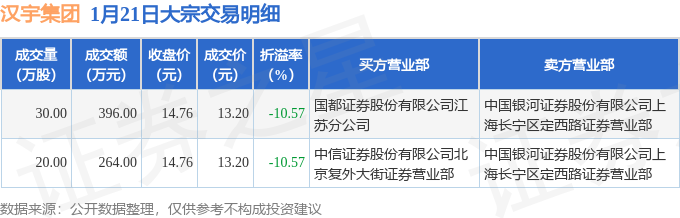 证券之星消息,1月21日汉宇集团发生大宗交易,交易数据如下:
