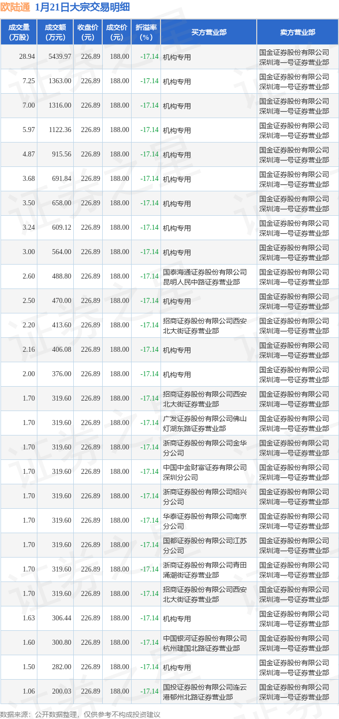 证券之星消息,1月21日欧陆通发生大宗交易,交易数据如下: