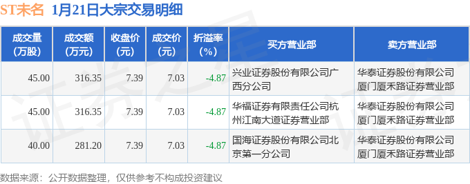 证券之星消息,1月21日ST未名发生大宗交易,交易数据如下: