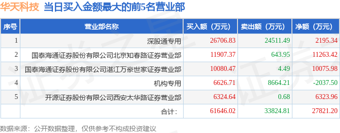 证券之星消息,沪深交易所2026年1月21日公布的交易公开信息显示,华天科技(002185)因日涨幅偏离值达到7%的前5只证券登上龙虎榜。此次是近5个交易日内第1次上榜。