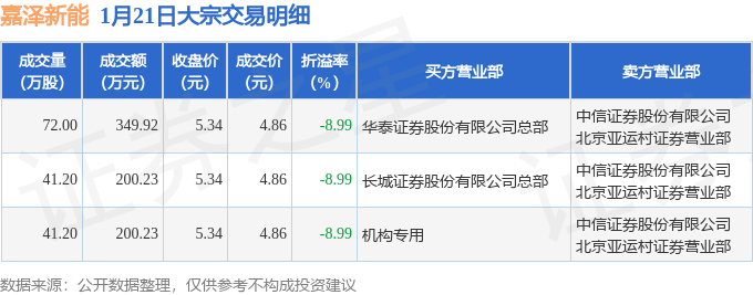 证券之星消息,1月21日嘉泽新能发生大宗交易,交易数据如下: