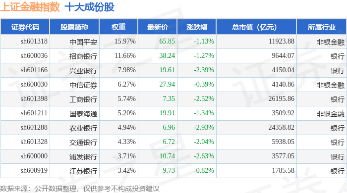 上证金融(000038)指数十大成份股详情如下: