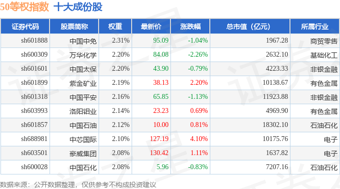 证券之星消息,1月21日,50等权(000050)指数报收于2463.65点,跌0.16%,成交1988.26亿元,换手率0.39%。当日该指数成份股中,上涨的有12家,海光信息以13.34%的涨幅领涨,下跌的有38家,陕西煤业以3.16%的跌幅领跌。