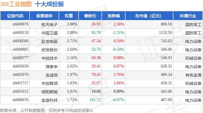 资金流向方面,380工业(000106)指数成份股当日主力资金净流出合计13.75亿元,游资资金净流出合计1.1亿元,散户资金净流入合计14.85亿元。成份股资金流向详情见下表: