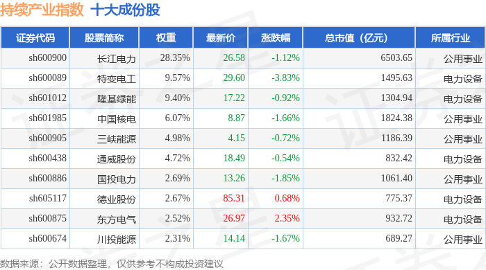 持续产业(000114)指数十大成份股详情如下:
