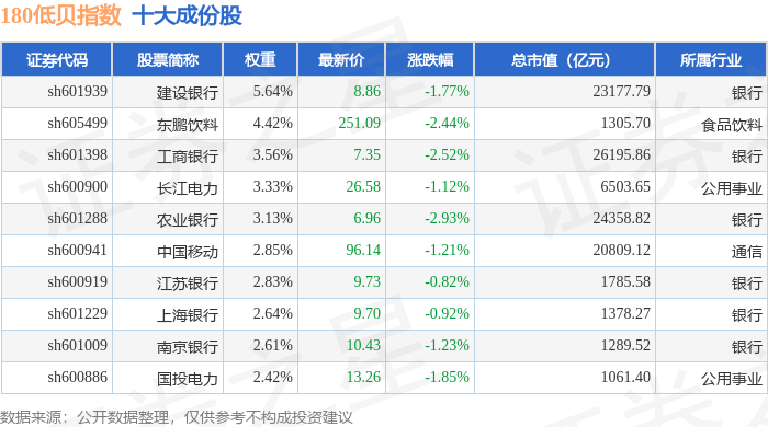 180低贝(000136)指数十大成份股详情如下: