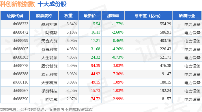 科创新能(000692)指数十大成份股详情如下: