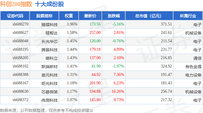 科创200(000699)指数十大成份股详情如下:
