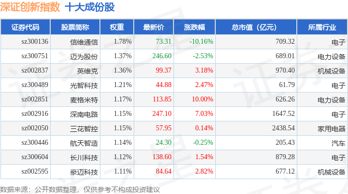深证创新(399016)指数十大成份股详情如下: