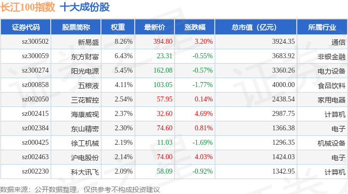 长江100(399278)指数十大成份股详情如下: