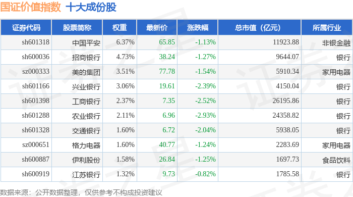 国证价值(399371)指数十大成份股详情如下: