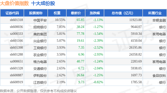 资金流向方面,大盘价值(399373)指数成份股当日主力资金净流出合计1.03亿元,游资资金净流出合计1.82亿元,散户资金净流入合计2.85亿元。成份股资金流向详情见下表: