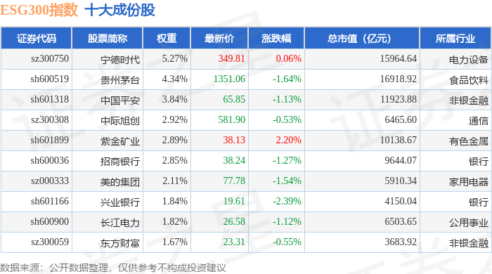 资金流向方面,ESG300(399378)指数成份股当日主力资金净流入合计5.18亿元,游资资金净流出合计55.31亿元,散户资金净流入合计50.13亿元。成份股资金流向详情见下表: