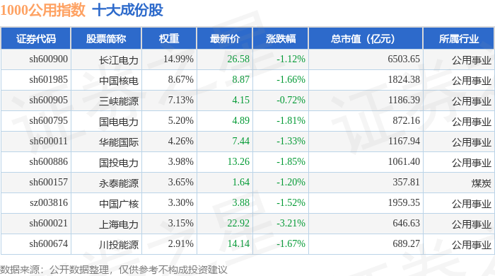 资金流向方面,1000公用(399390)指数成份股当日主力资金净流出合计9.98亿元,游资资金净流入合计5775.98万元,散户资金净流入合计9.41亿元。成份股资金流向详情见下表: