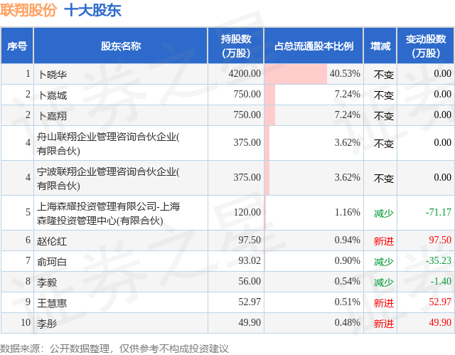 根据联翔股份2025年三季报公布的十大股东详情如下: