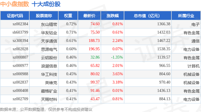 中小盘(399401)指数十大成份股详情如下: