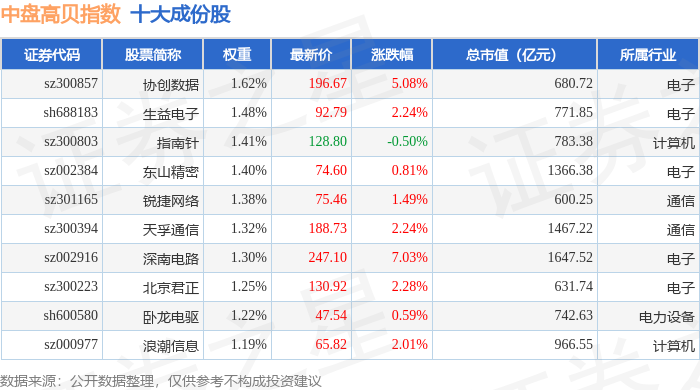 证券之星消息,1月21日,中盘高贝(399407)指数报收于3476.53点,涨2.17%,成交2149.33亿元,换手率3.51%。当日该指数成份股中,上涨的有73家,中钨高新以10.0%的涨幅领涨,下跌的有25家,国博电子以3.25%的跌幅领跌。