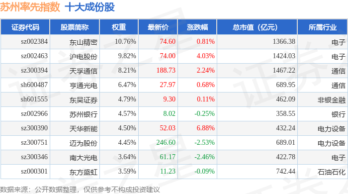 证券之星消息,1月21日,苏州率先(399410)指数报收于3160.24点,涨1.82%,成交470.12亿元,换手率2.41%。当日该指数成份股中,上涨的有19家,罗博特科以14.73%的涨幅领涨,下跌的有11家,阿特斯以2.6%的跌幅领跌。