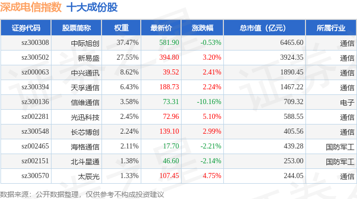 深成电信(399688)指数十大成份股详情如下: