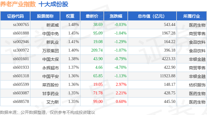 近10日内养老产业(399812)指数成份股做了调整,剔除了1只股票。