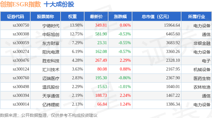 创指ESGR(470028)指数十大成份股详情如下: