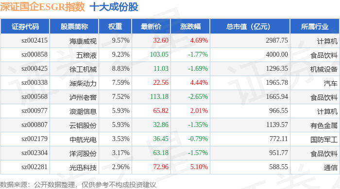 深证国企ESGR(470055)指数十大成份股详情如下: