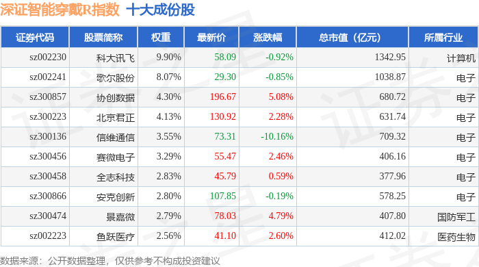 深证智能穿戴R(470074)指数十大成份股详情如下: