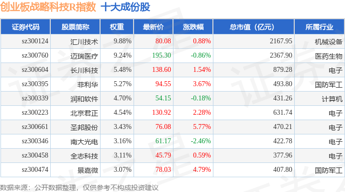 创业板战略科技R(471004)指数十大成份股详情如下: