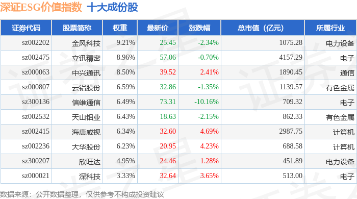证券之星消息,1月21日,深证ESG价值(970061)指数报收于1938.37点,涨0.31%,成交842.51亿元,换手率3.27%。当日该指数成份股中,上涨的有25家,通富微电以10.0%的涨幅领涨,下跌的有23家,信维通信以10.16%的跌幅领跌。
