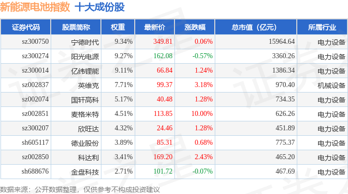 证券之星消息,1月21日,新能源电池(980027)指数报收于3498.53点,涨1.45%,成交596.33亿元,换手率3.52%。当日该指数成份股中,上涨的有34家,华自科技以12.81%的涨幅领涨,下跌的有16家,阿特斯以2.6%的跌幅领跌。