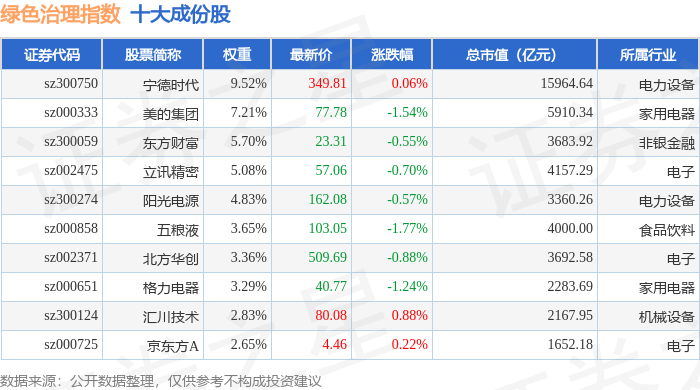 绿色治理(980058)指数十大成份股详情如下: