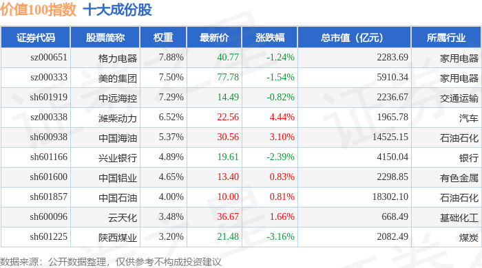 价值100(980081)指数十大成份股详情如下:
