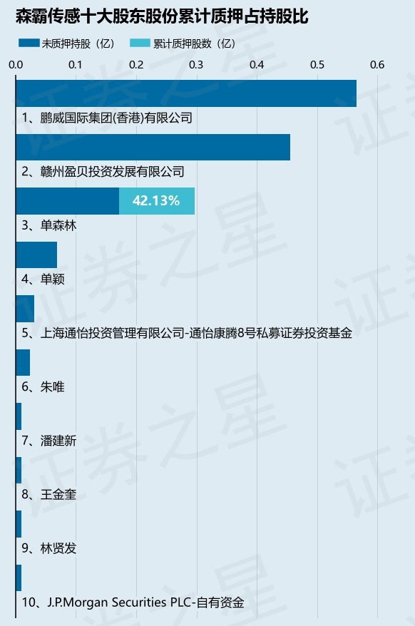 证券之星消息,森霸传感(300701)1月21日公开信息显示,股东单森林向招商证券股份有限公司合计质押1249.0万股,占总股本4.42%。质押详情见下表: