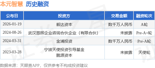 证券之星消息,根据天眼查APP于1月19日公布的信息整理,本元智慧科技有限公司A轮融资,融资额数千万人民币,参与投资的机构包括毅达资本。