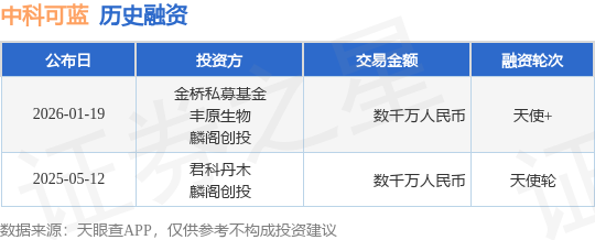 证券之星消息,根据天眼查APP于1月19日公布的信息整理,北京中科可蓝新材料科技有限公司天使+融资,融资额数千万人民币,参与投资的机构包括金桥私募基金,丰原生物,麟阁创投。
