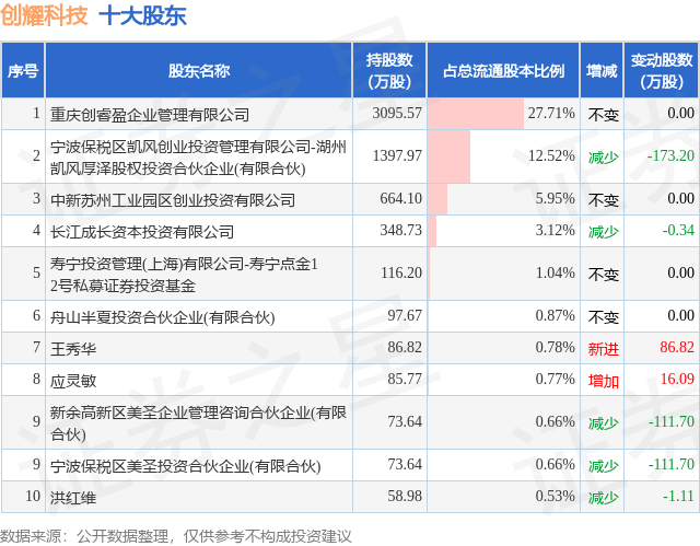 根据创耀科技2025年三季报公布的十大股东详情如下: