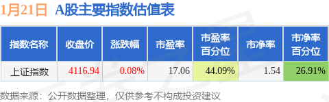证券之星消息,1月21日A股收盘,上证综指指涨0.08%,报收4116.94点;深圳成指涨0.7%,报收14255.12点;创业板指涨0.54%,报收3295.52点。
