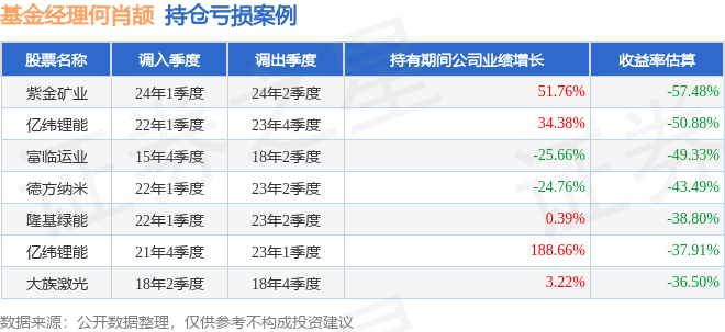 何肖颉管理的工银新趋势灵活配置混合A基金在24年1季度买入紫金矿业,在持有1个季度后在24年2季度卖出。持有期间的估算收益率为-57.48%,持有期间紫金矿业在2023年到2024年的年报归属净利润增幅达51.76%。