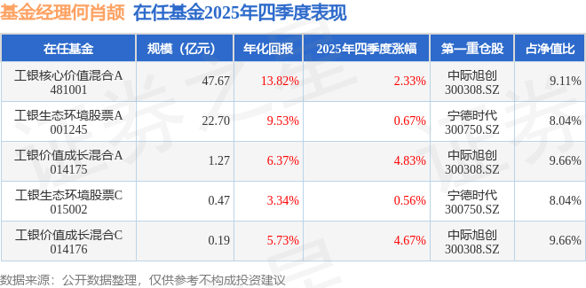 证券之星消息,截止2025年四季度末,基金经理何肖颉旗下共管理5只基金,本季度表现最佳的为工银价值成长混合A(014175),季度净值涨4.83%。