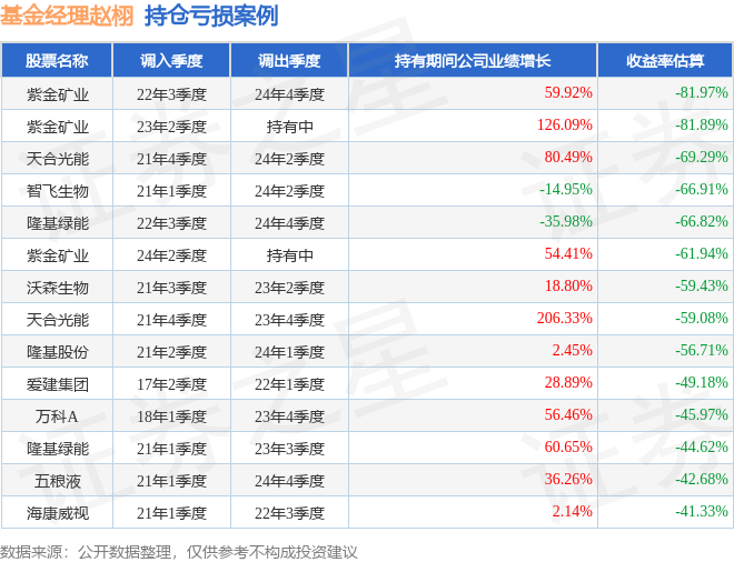 赵栩管理的工银瑞信中证上海环交所碳中和ETF基金在22年3季度买入紫金矿业,在持有2年又1个季度后在24年4季度卖出。持有期间的估算收益率为-81.97%,持有期间紫金矿业在2022年到2024年的年报归属净利润增幅达59.92%。
