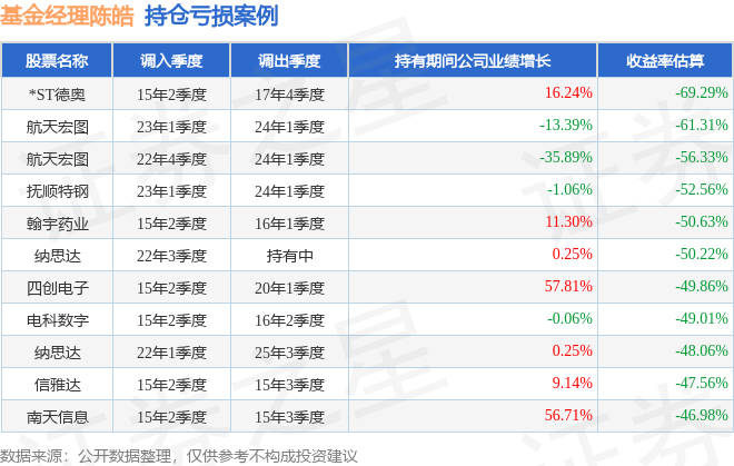 陈皓管理的易方达国防军工混合A基金在15年2季度买入*ST德奥,在持有2年又2个季度后在17年4季度卖出。持有期间的估算收益率为-69.29%,持有期间*ST德奥在2015年到2017年的年报营业总收入增幅达16.24%。