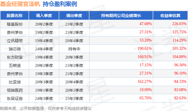 官泽帆管理的易方达量化策略A基金在20年2季度买入隆基股份,在持有1年又0个季度后在21年2季度卖出。持有期间的估算收益率为226.03%,持有期间隆基股份在2020年到2021年的年报营业总收入增幅达47.68%。
