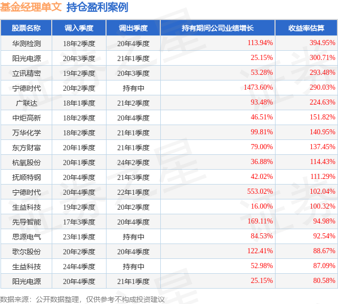 单文管理的工银信息产业混合A基金在18年2季度买入华测检测,在持有2年又2个季度后在20年4季度卖出。持有期间的估算收益率为394.95%,持有期间华测检测在2018年到2020年的年报归属净利润增幅达113.94%。