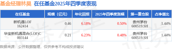 证券之星消息,截止2025年四季度末,基金经理林昊旗下共管理2只基金,本季度表现最佳的为新机遇LOF(162414),季度净值涨0.5%。