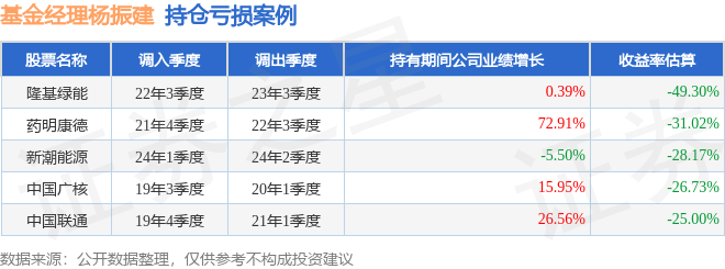 杨振建管理的博时沪深300指数A基金在22年3季度买入隆基绿能,在持有1年又0个季度后在23年3季度卖出。持有期间的估算收益率为-49.3%,持有期间隆基绿能在2022年到2023年的年报营业总收入增幅达0.39%。