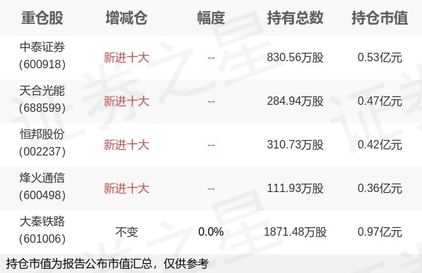 证券之星消息,1月22日易方达基金旗下田鑫管理的易方达双债增强债券型基金公布年报,近1年净值增长率3.82%。与上一季度相比,该基金前十大重仓股新增中泰证券,天合光能,恒邦股份,烽火通信;其中大秦铁路持仓占比1.0%,为该基金第一大重仓股;详细数据如下:
