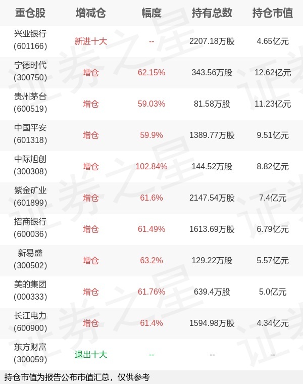 证券之星消息,1月22日国泰基金旗下黄岳管理的国泰中证A500交易型开放式指数基金公布年报,近1年净值增长率33.91%。与上一季度相比,该基金前十大重仓股新增兴业银行;并对宁德时代增仓131.68万股,为该基金第一大重仓股;东方财富等退出前十大重仓股;详细数据如下: