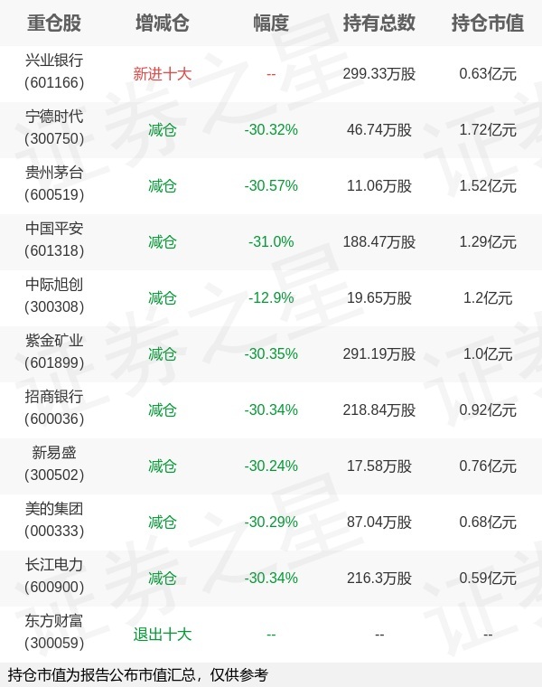 证券之星消息,1月22日景顺长城基金旗下龚丽丽管理的景顺长城中证A500交易型开放式指数基金公布年报,近1年净值增长率33.57%。与上一季度相比,该基金前十大重仓股新增兴业银行;其中宁德时代持仓占比3.36%,为该基金第一大重仓股;东方财富等退出前十大重仓股;详细数据如下: