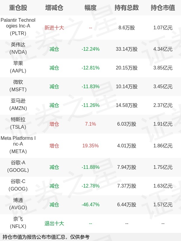 证券之星消息,1月22日大成基金旗下冉凌浩管理的大成纳斯达克100交易型开放式指数基金(QDII)公布年报,近1年净值增长率12.53%。与上一季度相比,该基金前十大重仓股新增Palantir Technologies Inc-A;其中英伟达持仓占比7.27%,为该基金第一大重仓股;奈飞等退出前十大重仓股;详细数据如下: